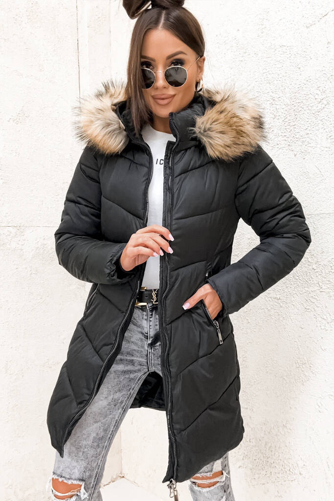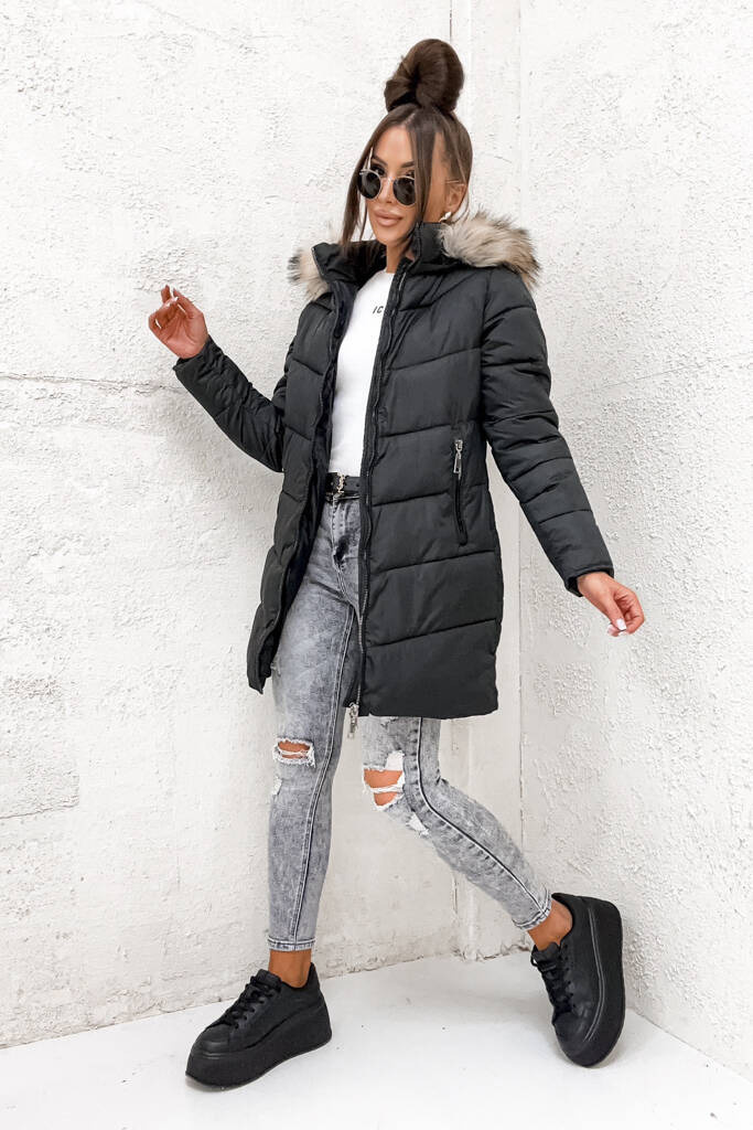 CZARNA PIKOWANA KURTKA Z KAPTUREM