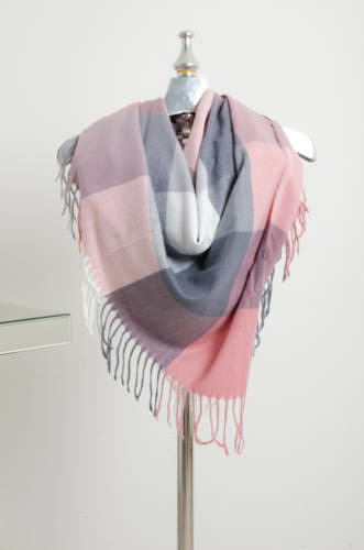 SZAL W KRATĘ Z FRĘDZLAMI- RÓŻOWY