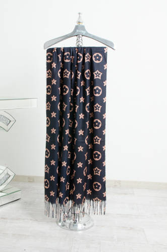 WZORZYSTY SZAL Z FRĘDZLAMI- BRĄZOWO-CZARNY