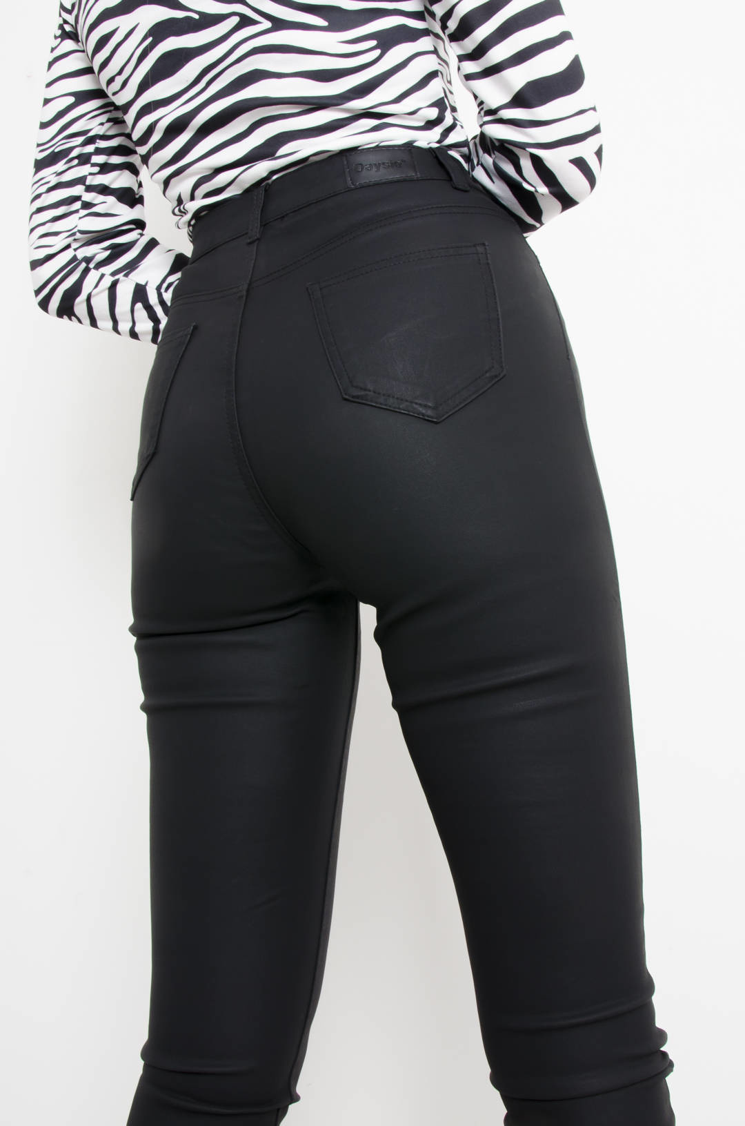 SPODNIE WOSKOWANE Z WYSOKIM STANEM- CZARNE