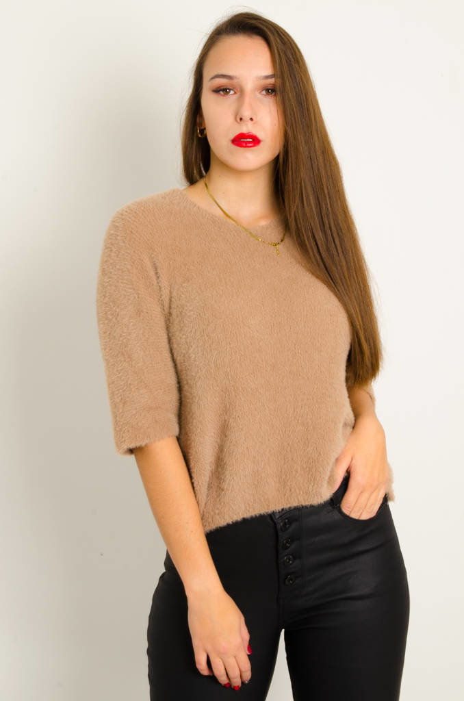 FUTRZANY SWETER NIETOPERZ- BRĄZOWY