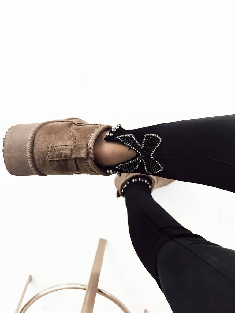 SPODNIE SKINNY Z OZDOBNĄ KOKARDĄ I KORALIKAMI- CZARNE