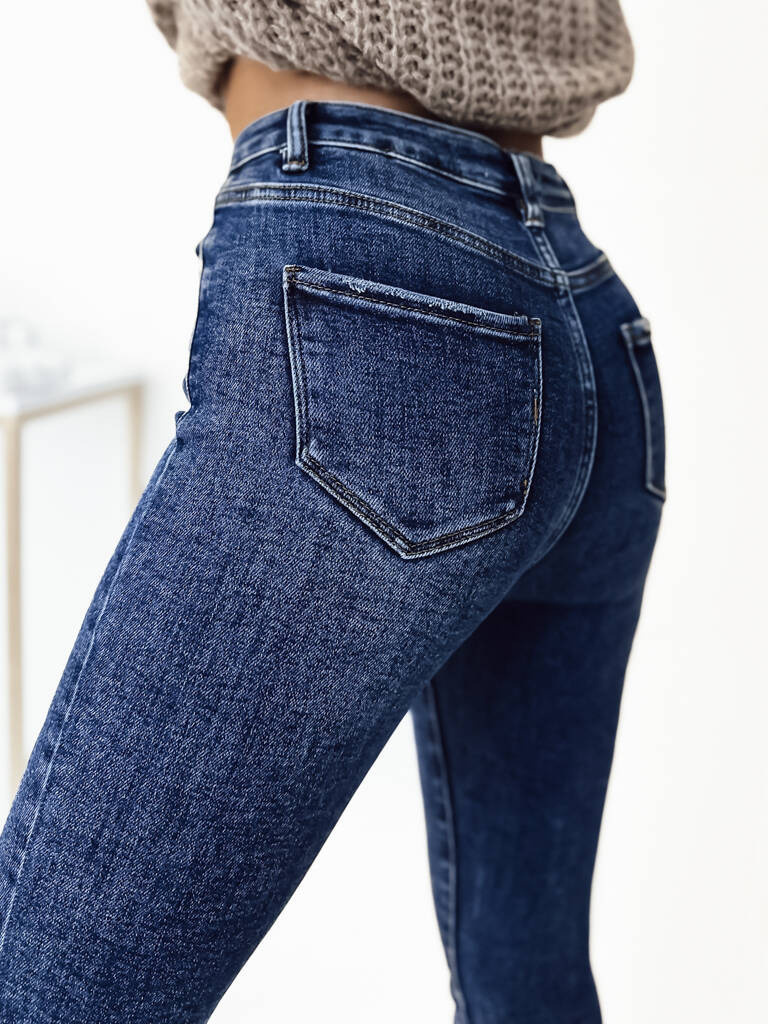 CIEMNE JEANSY Z GUZIKAMI PRZY NOGAWCE- WYSOKI STAN
