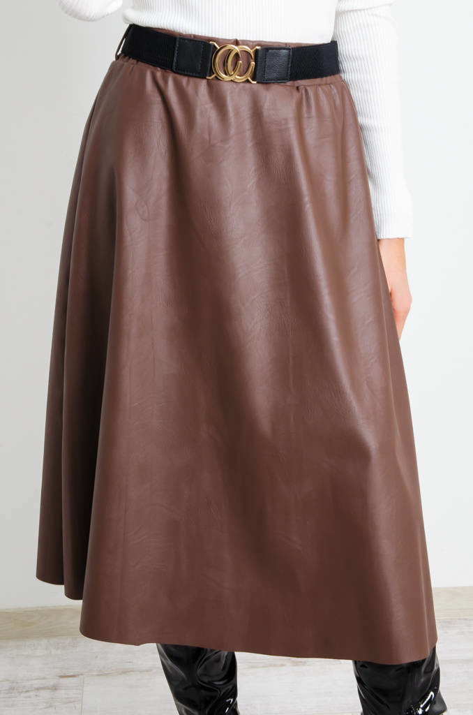 BRĄZOWA ROZKLOSZOWANA SPÓDNICA Z IMITACJI SKÓRY+ PASEK