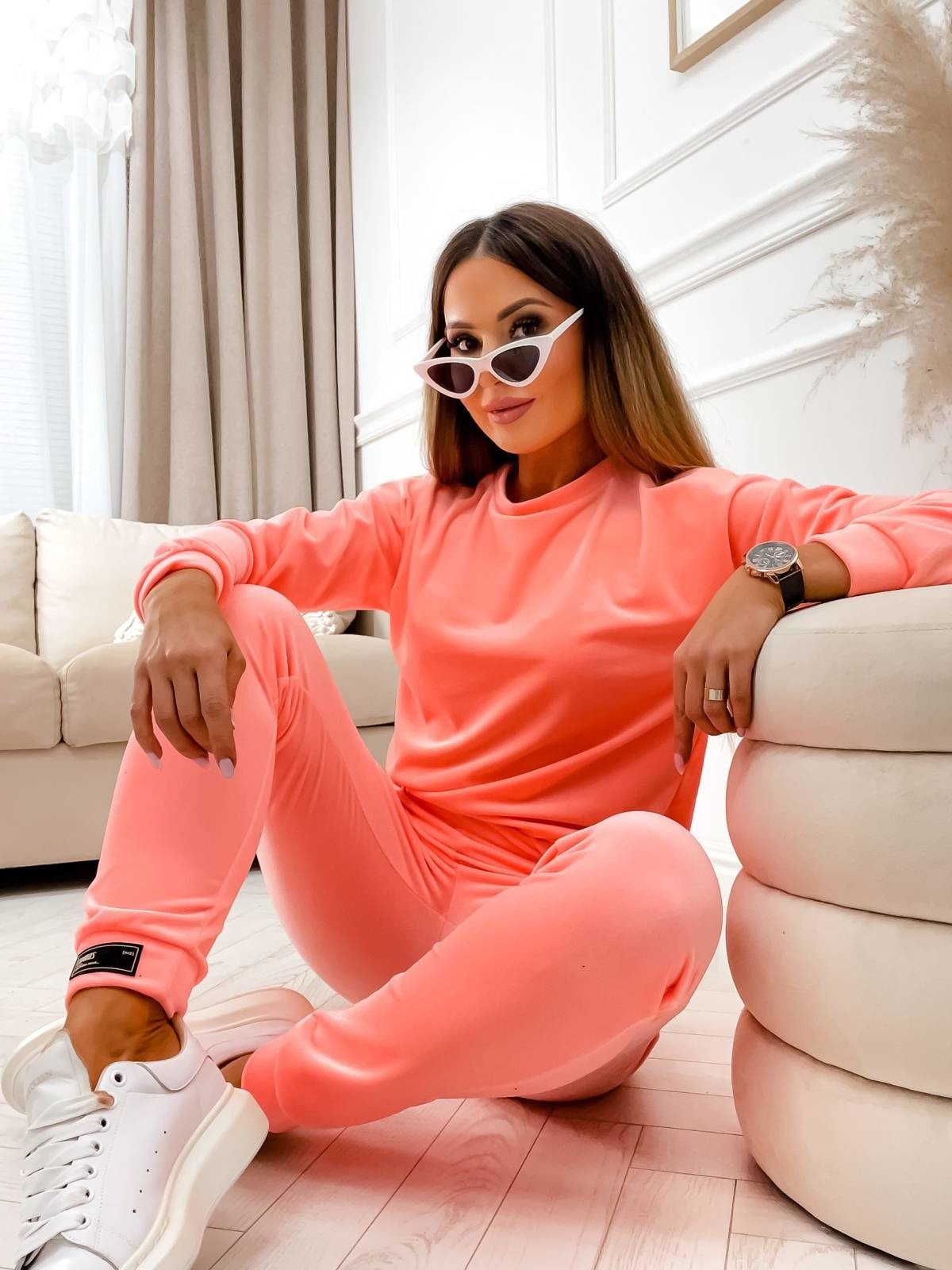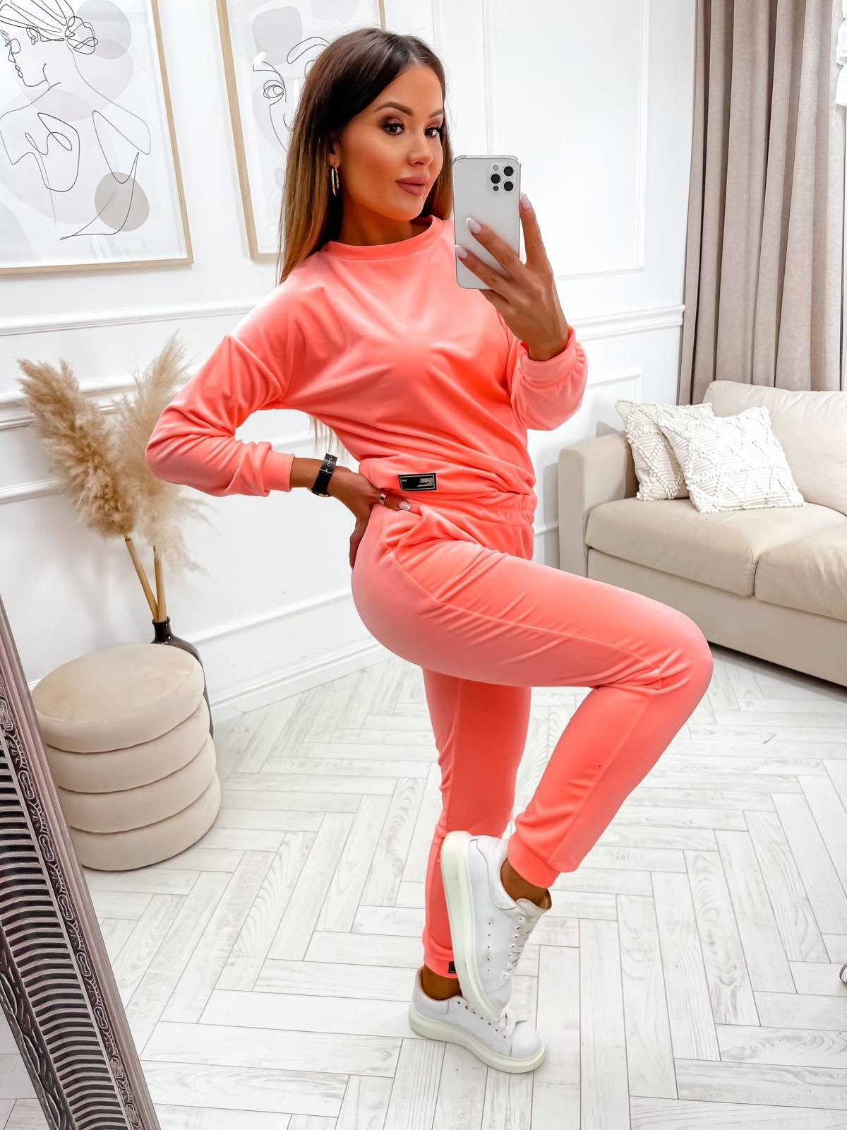 WELUROWY KOMPLET DRESOWY Z NASZYWKĄ- BRZOSKWINIOWY