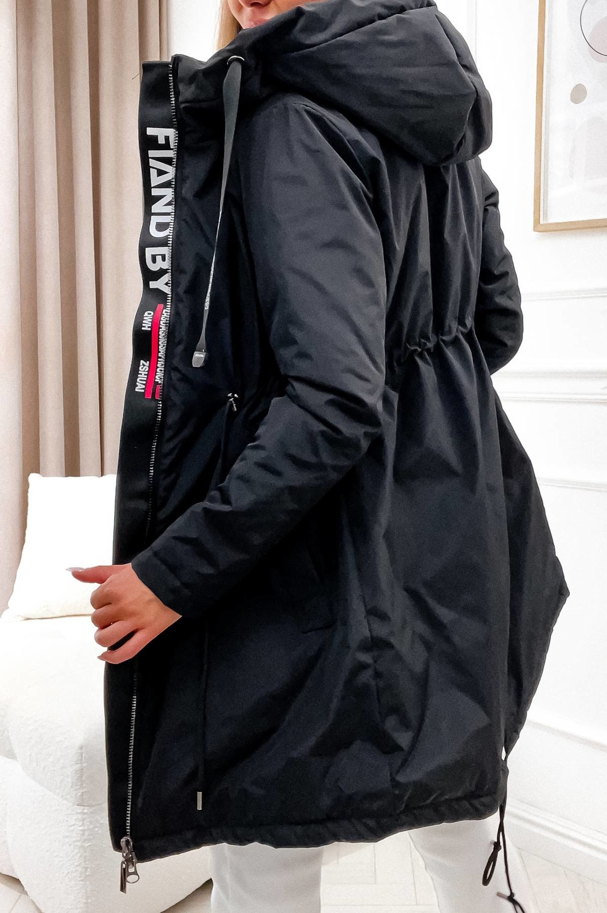 KURTKA PARKA Z KAPTUREM I ŚCIĄGACZEM W PASIE- CZARNA