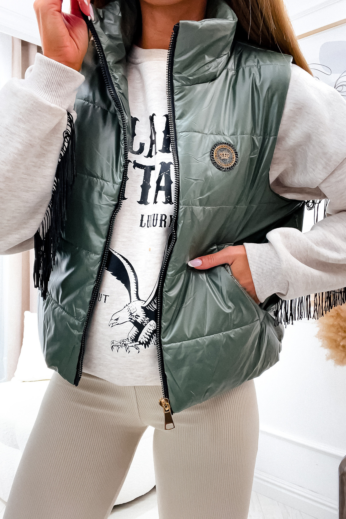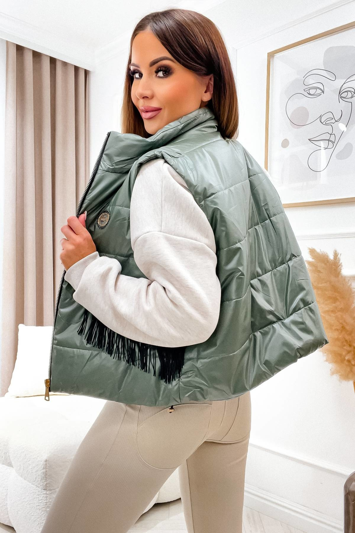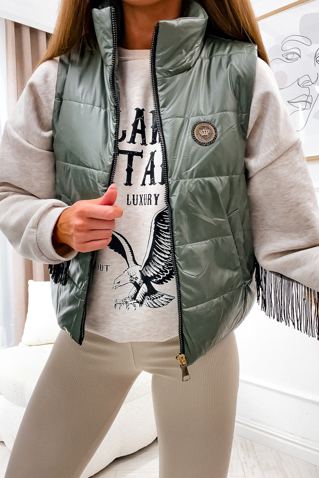KAMIZELKA PIKOWANA Z NASZYWKĄ- ZIELONA