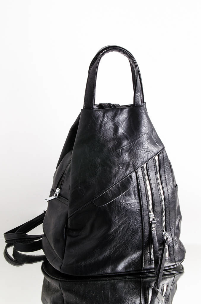 PLECAK Z IMITACJI SKÓRY Z OZDOBNYMI ZAMKAMI- CZARNY