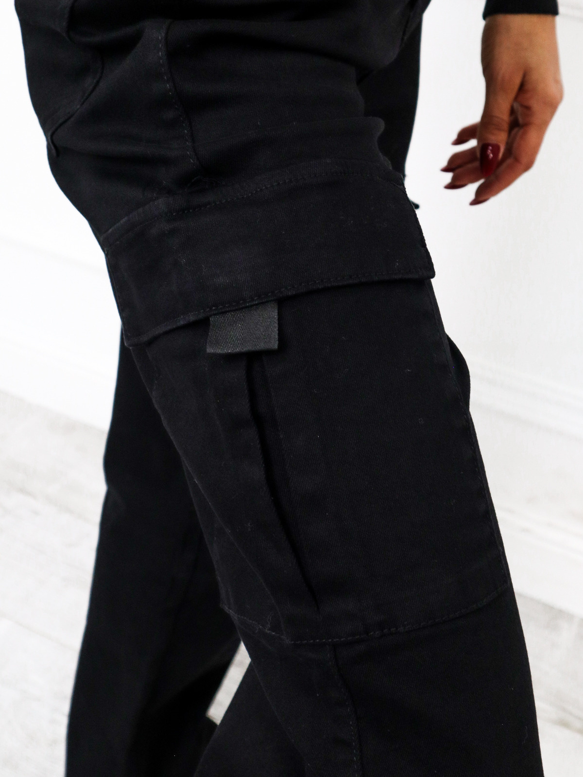 SPODNIE BOJÓWKI Z SZEROKIMI NOGAWKAMI- CZARNE