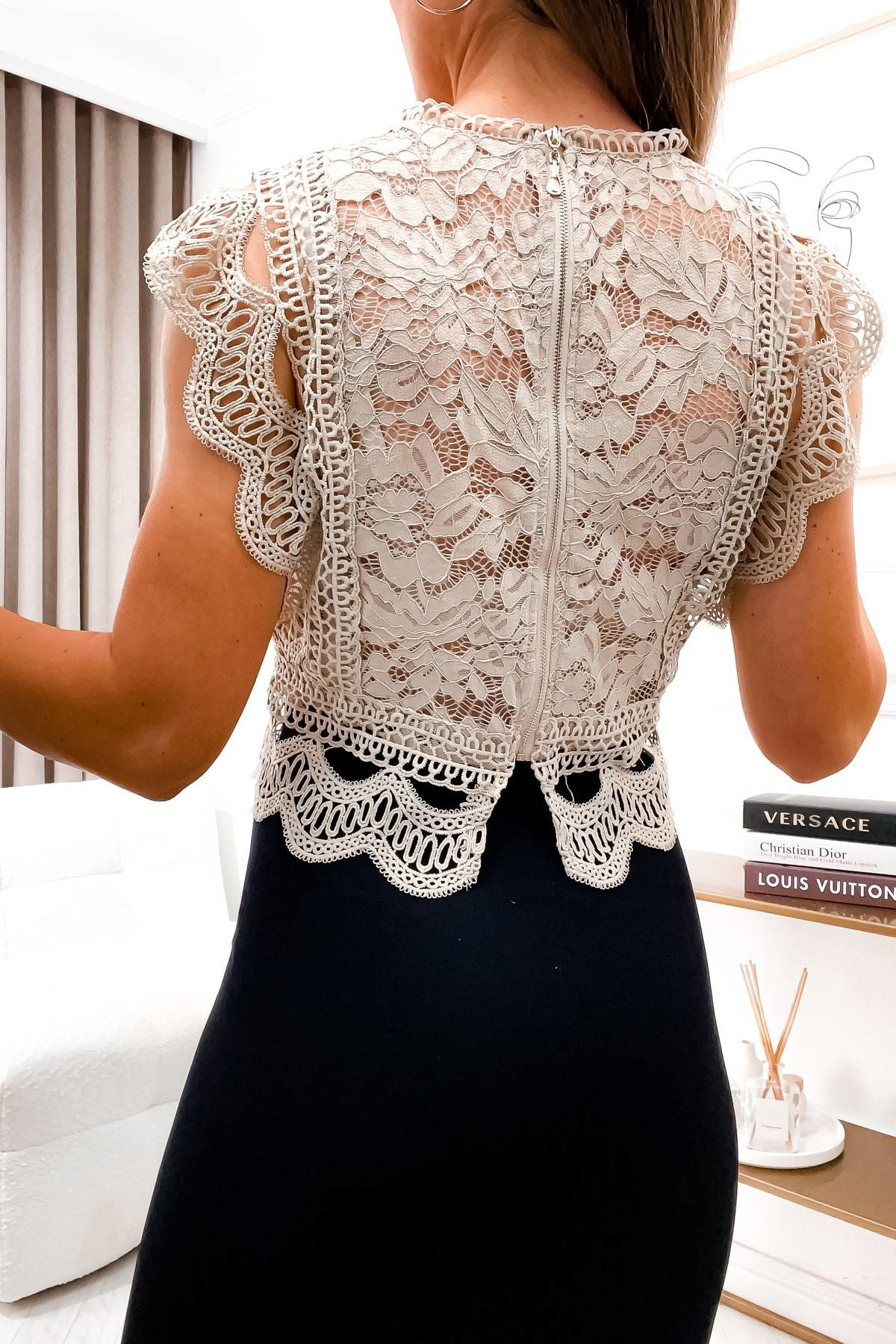 AŻUROWA BLUZKA Z OZDOBNYM ZAMKIEM- BEŻOWA