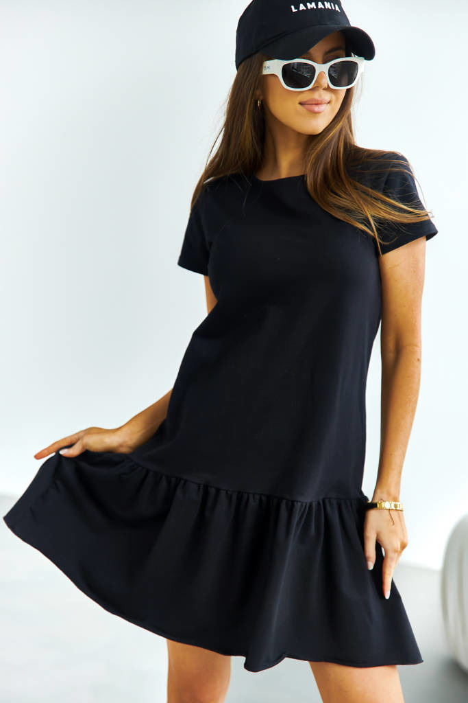BAWEŁNIANA SUKIENKA Z FALBANĄ- CZARNA