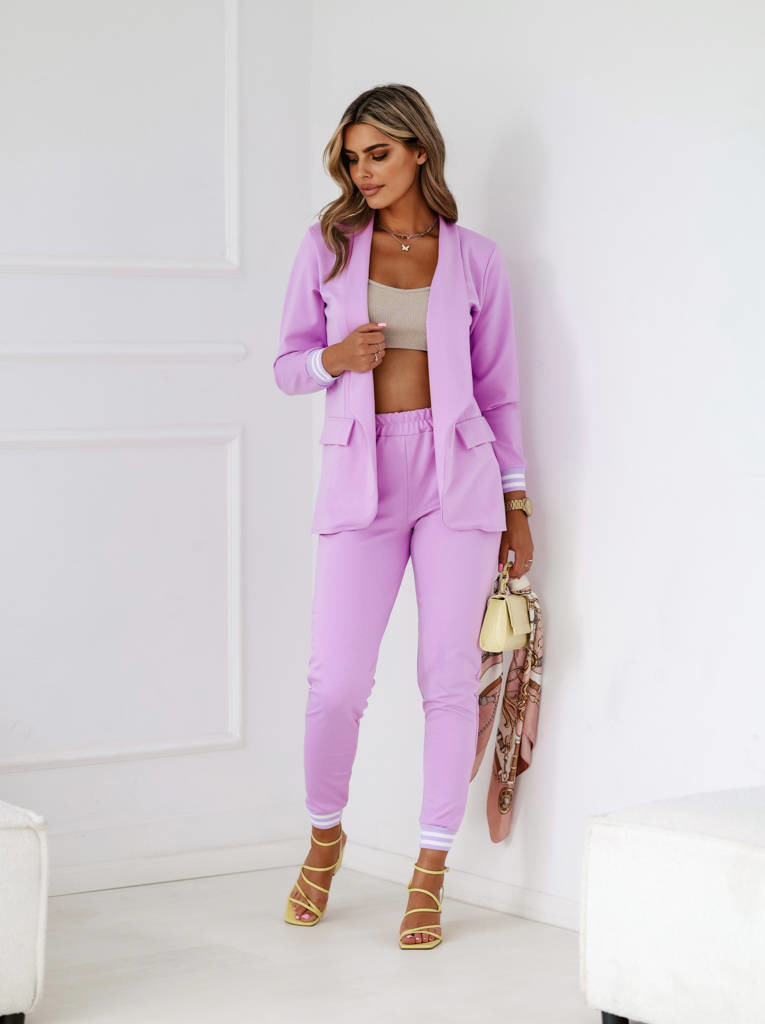 KOMPLET SPODNIE+ MARYNARKA ZE ŚCIĄGACZAMI- FIOLETOWY