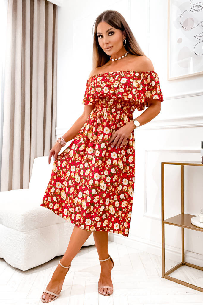 SUKIENKA HISZPANKA MIDI W KWIATOWY WZÓR- CZERWONA
