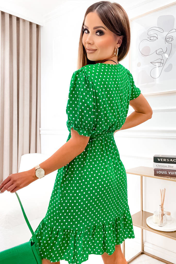 SUKIENKA MINI W KROPKI Z KOPERTOWYM DEKOLTEM- ZIELONA
