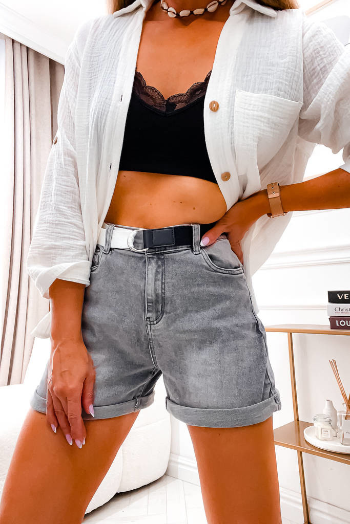 SZORTY Z WYSOKIM STANEM I BIAŁO-CZARNYM PASKIEM- SZARE