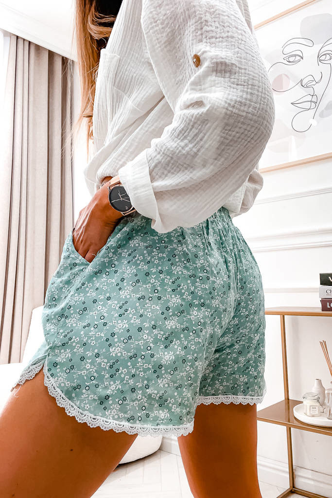 SZORTY W KWIATY I OZDOBNA KORONKĘ - ZIELONE