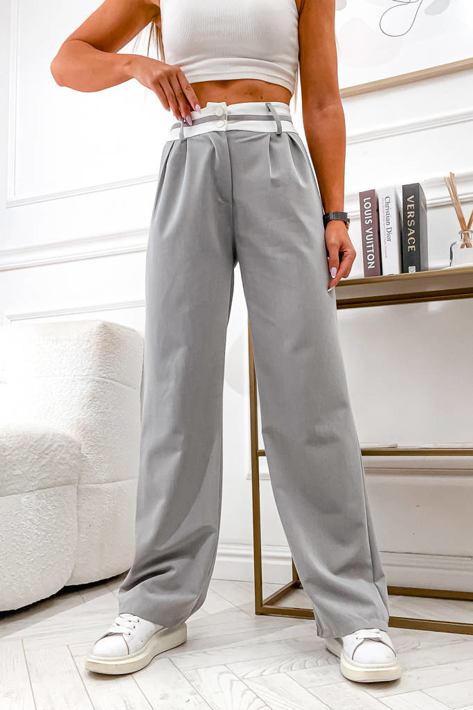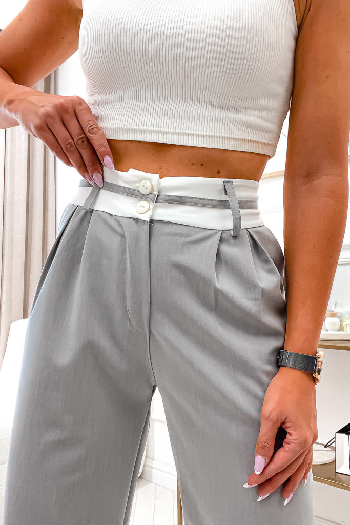 SZEROKIE SPODNIE Z BIAŁYM PASEM- SZARE