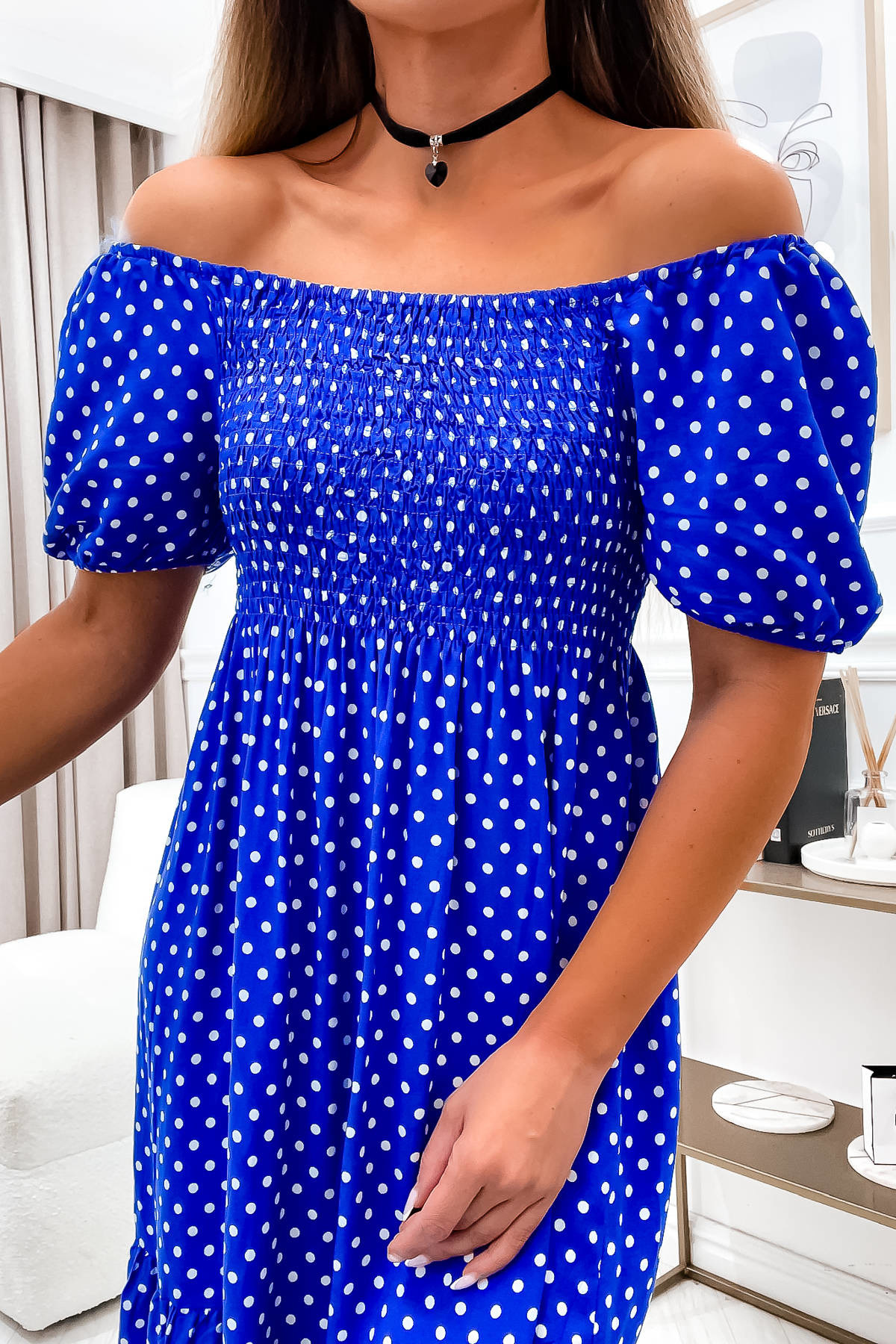 SUKIENKA HISZPANKA W KROPKI- NIEBIESKA