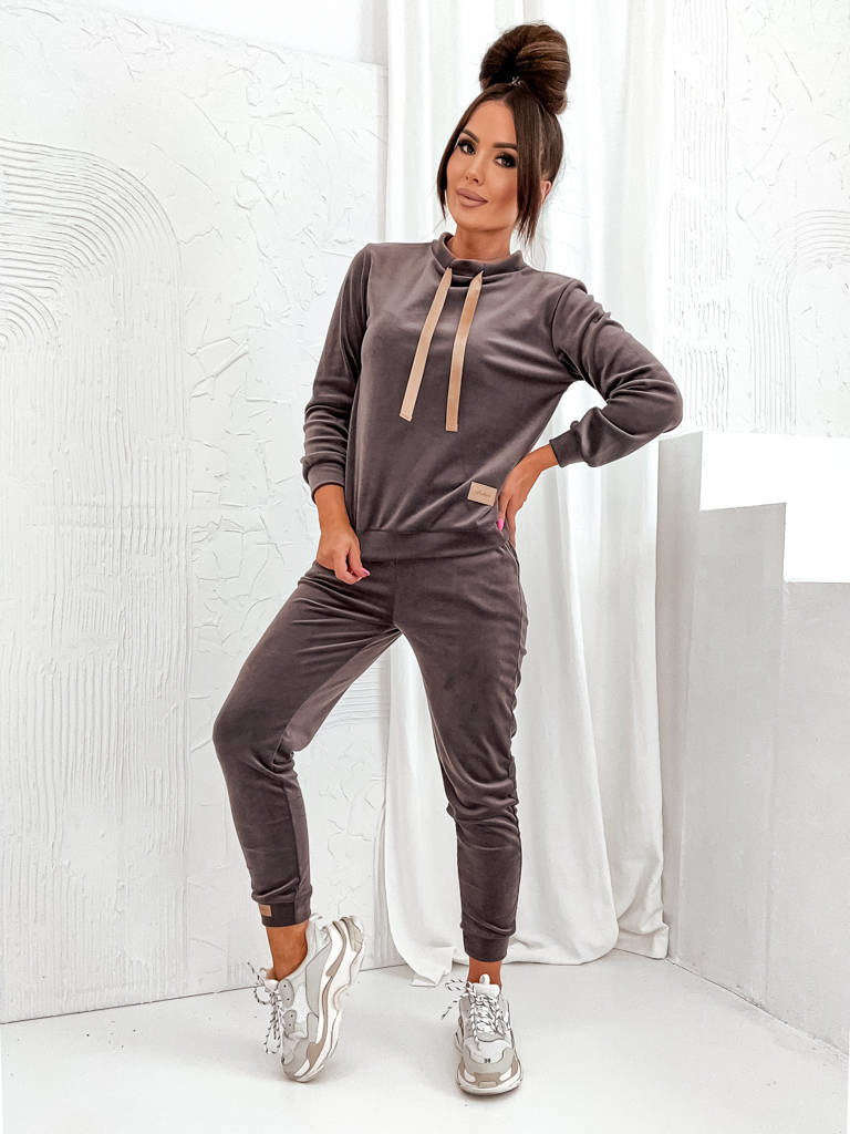 WELUROWY KOMPLET DRESOWY Z OZDOBNYMI NASZYWKAMI- GRAFITOWY