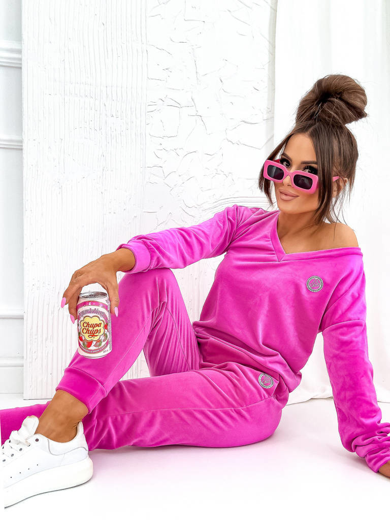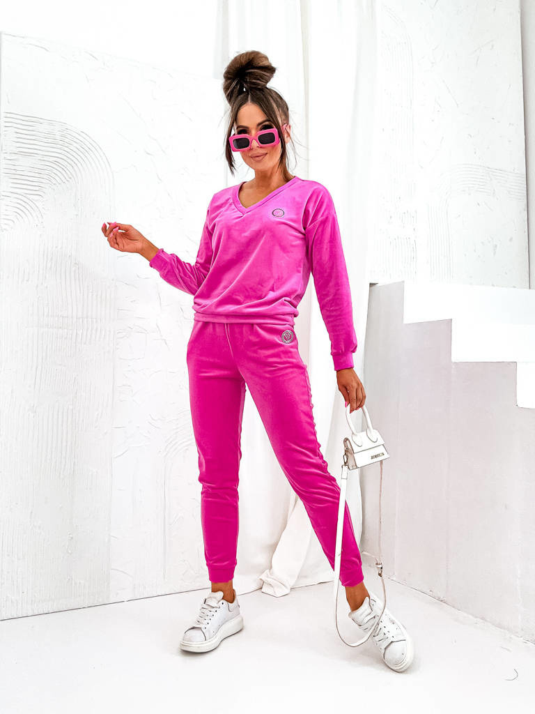 WELUROWY KOMPLET DRESOWY BLUZA W SZPIC + SPODNIE Z NASZYWKĄ- RÓŻOWY