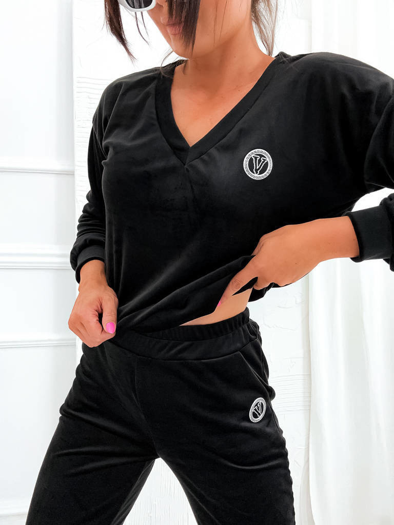 WELUROWY KOMPLET DRESOWY BLUZA W SZPIC + SPODNIE Z NASZYWKĄ- CZARNY