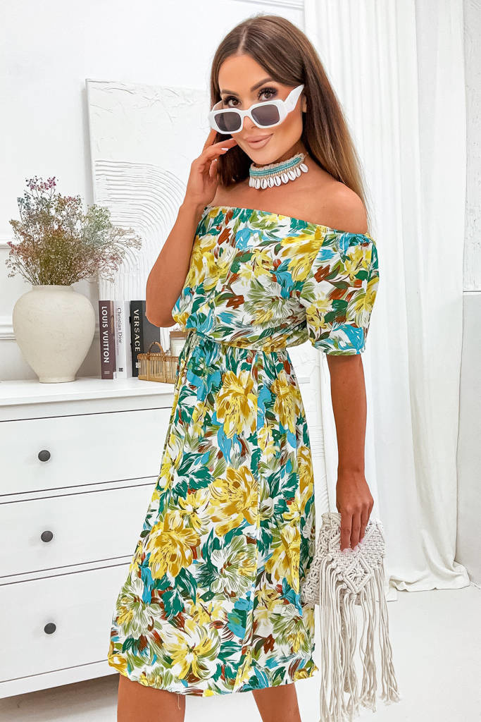SUKIENKA HISZPANKA W KWIATY Z GUMKĄ W PASIE- BIAŁA