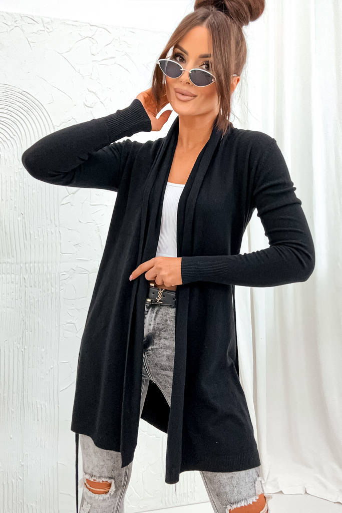 DZIANINOWA NARZUTA Z WIĄZANIEM W PASIE- CZARNA