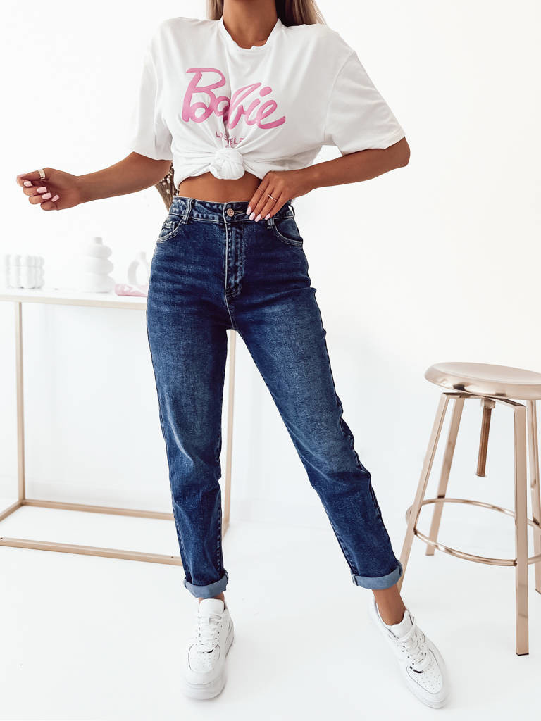 SPODNIE JEANSOWE JASNE- MOM STRETCH- GRANATOWE