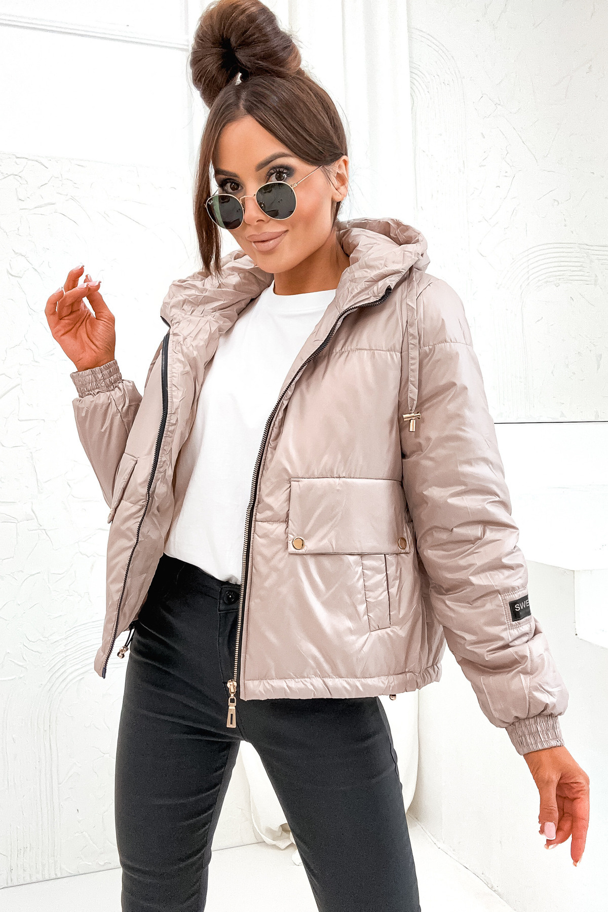 KURTKA ASYMETRYCZNA ZE ZŁOTYMI ELEMENTAMI- BEŻOWA