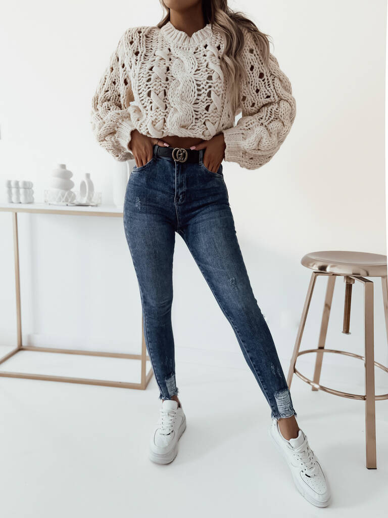 SPODNIE JEANSOWE Z PRZETARCIAMI NA DOLE NOGAWKI+ PASEK