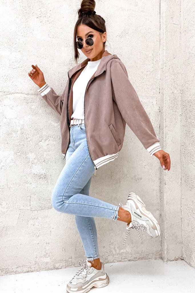 BLUZA ZAMSZOWA Z KONTRASTOWYMI ŚCIĄGACZAMI- BRUDNY RÓŻ