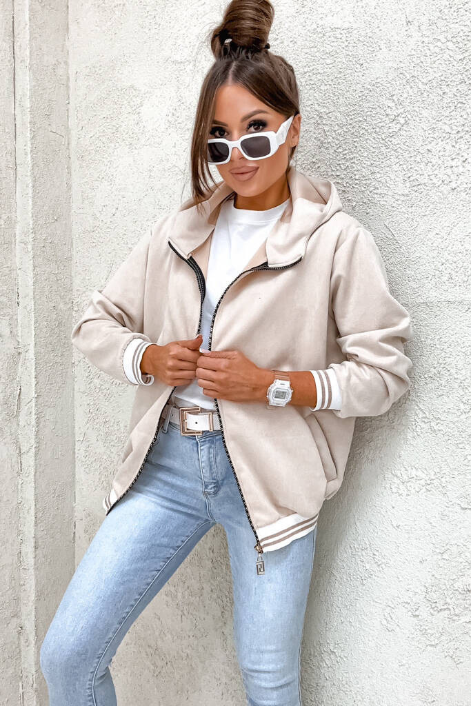 BLUZA ZAMSZOWA Z KONTRASTOWYMI ŚCIĄGACZAMI- BEŻOWA