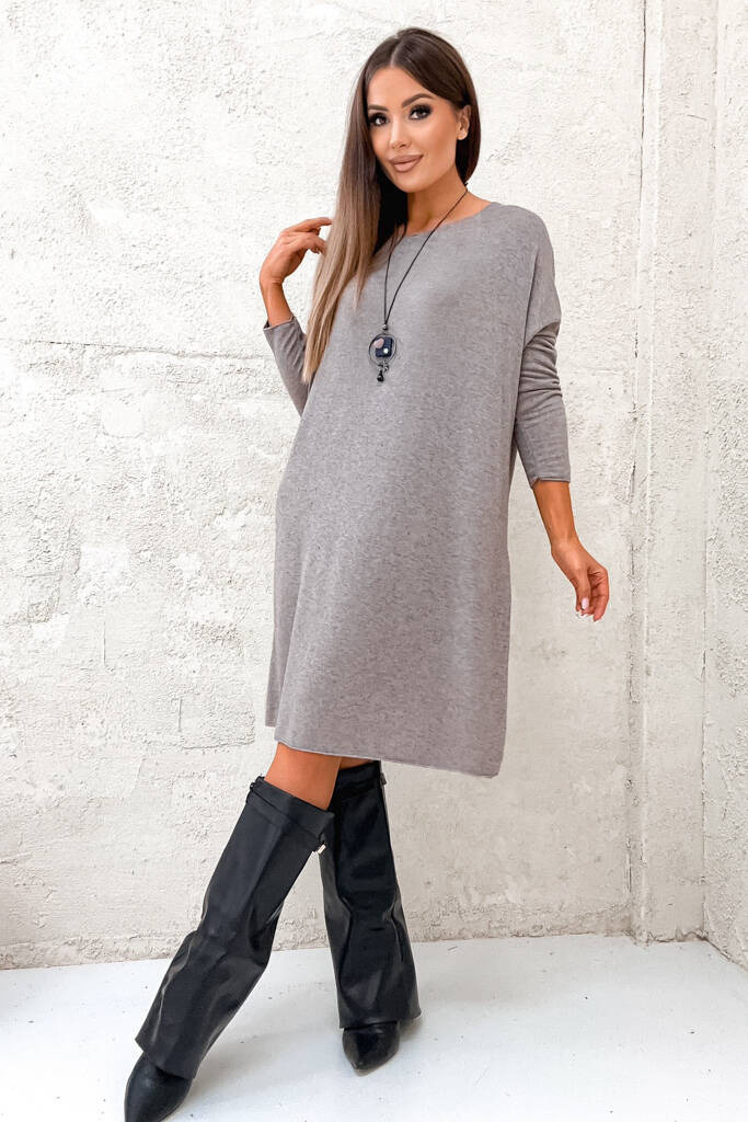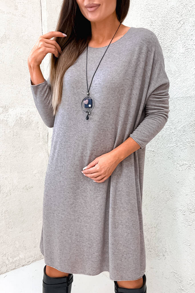 CIEMNO SZARA SUKIENKA MIDI OVERSIZE+ NASZYJNIK