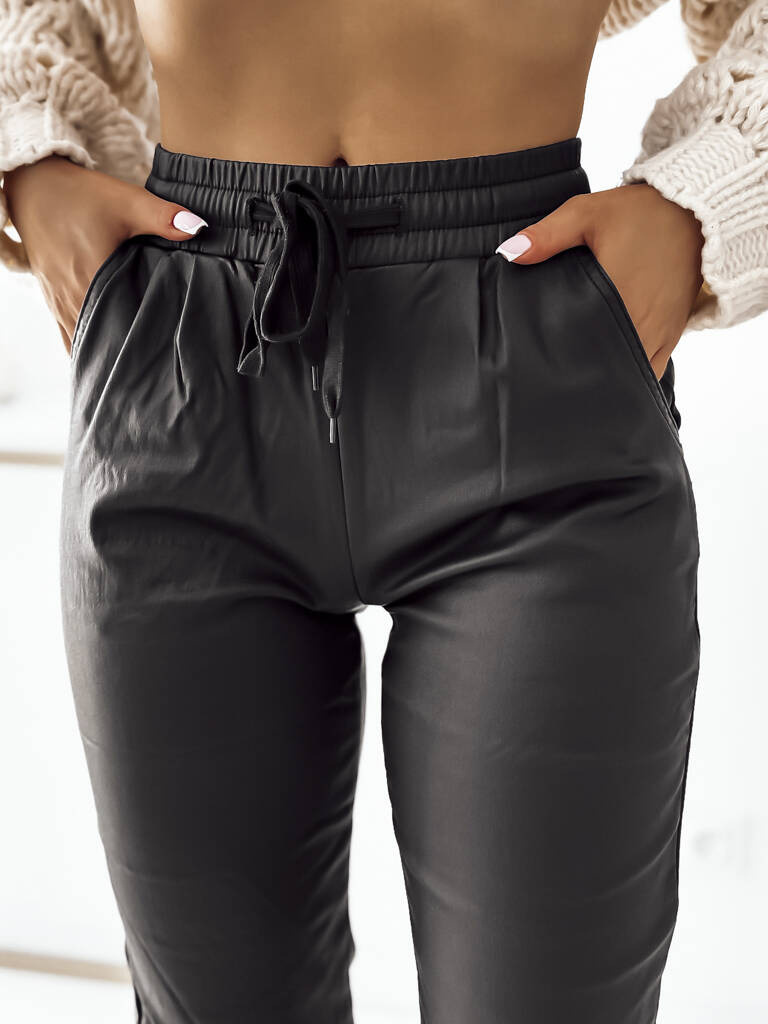 SPODNIE WOSKOWANE JOGGERY- CZARNE