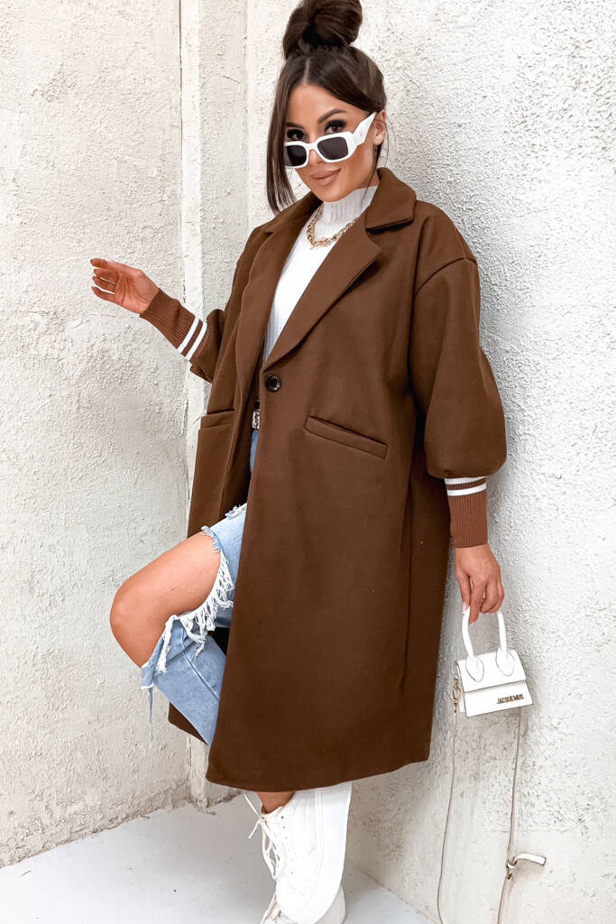 BRĄZOWY PŁASZCZ ZE ŚCIĄGACZAMI PRZY RĘKAWACH