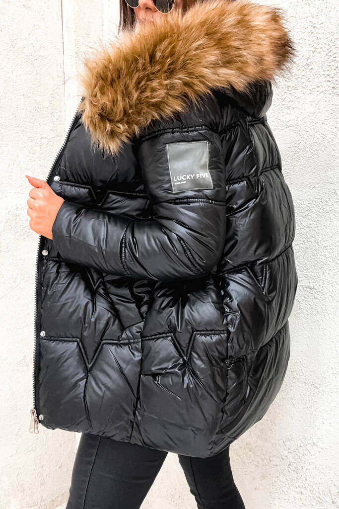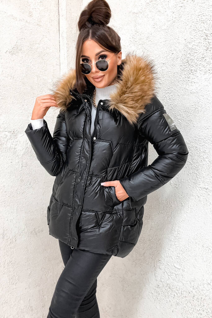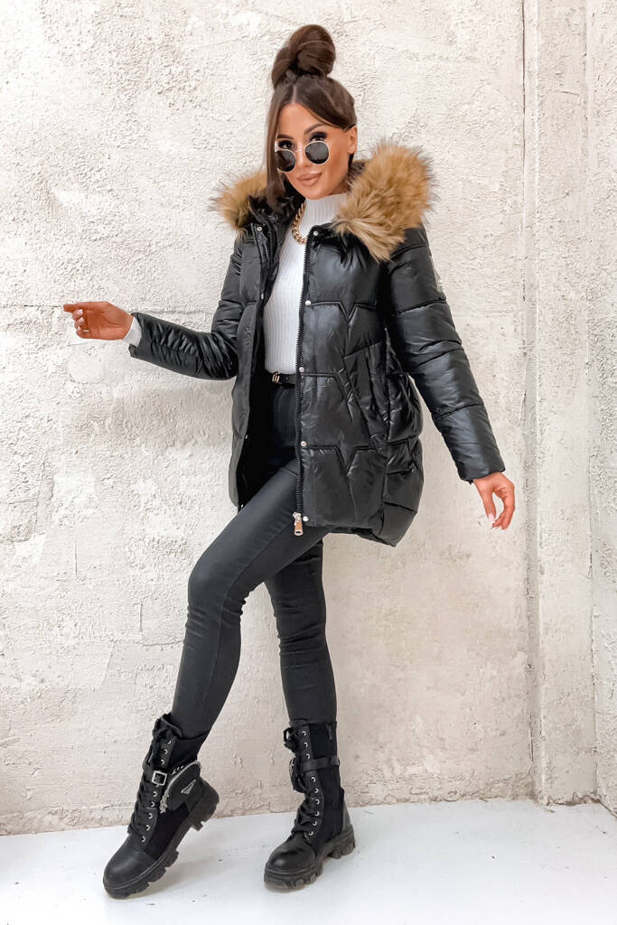 CZARNA KURTKA PIKOWANA Z NASZYWKĄ NA RĘKAWIE- CZARNA