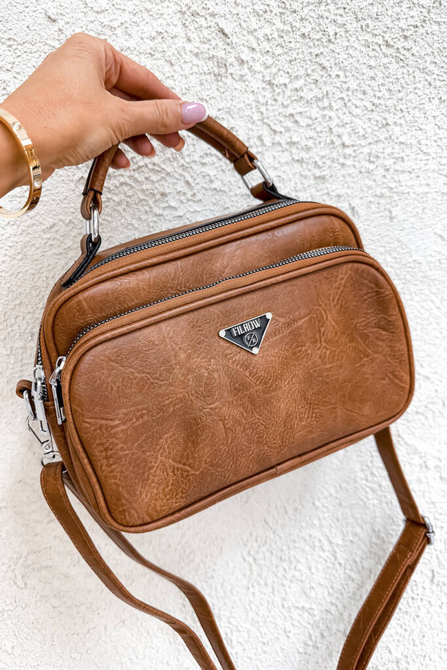 TOREBKA KUFEREK Z KIESZONKAMI NA ZAMEK- BRĄZOWA