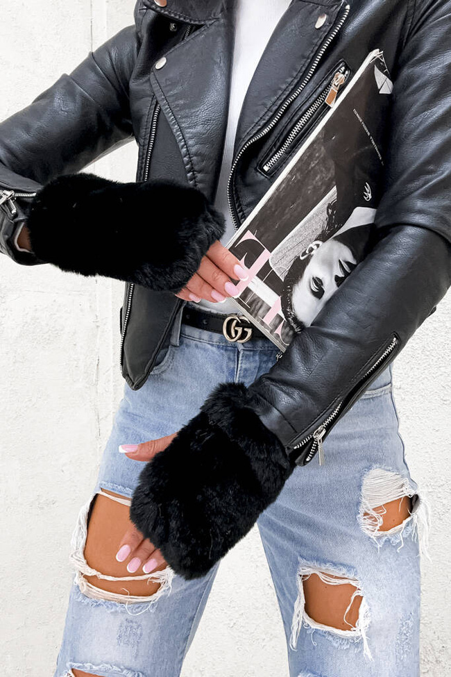 RAKAWICZKI BEZ PALCÓW Z OZDOBNYM FUTERKIEM - CZARNE