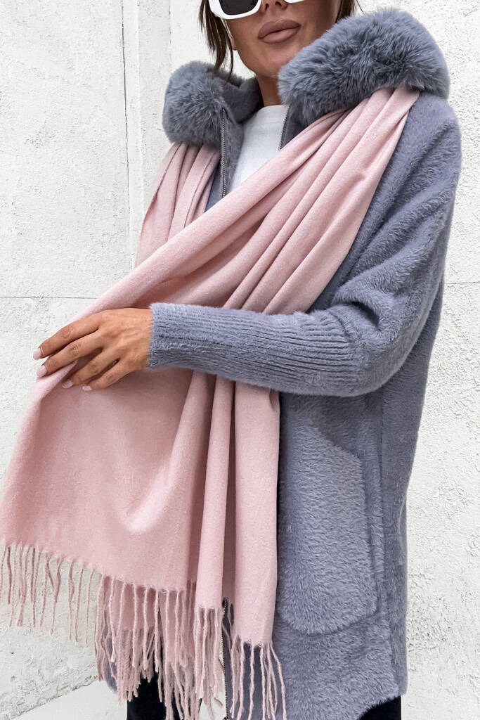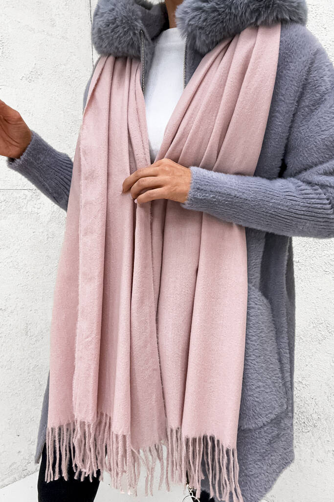 KLASYCZNY SZAL Z FRĘDZLAMI- JASNY RÓŻ