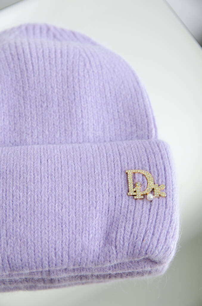 OCIEPLANA CZAPKA ZIMOW Z OZDOBNĄ PRZYPINKĄ- FIOLETOWA