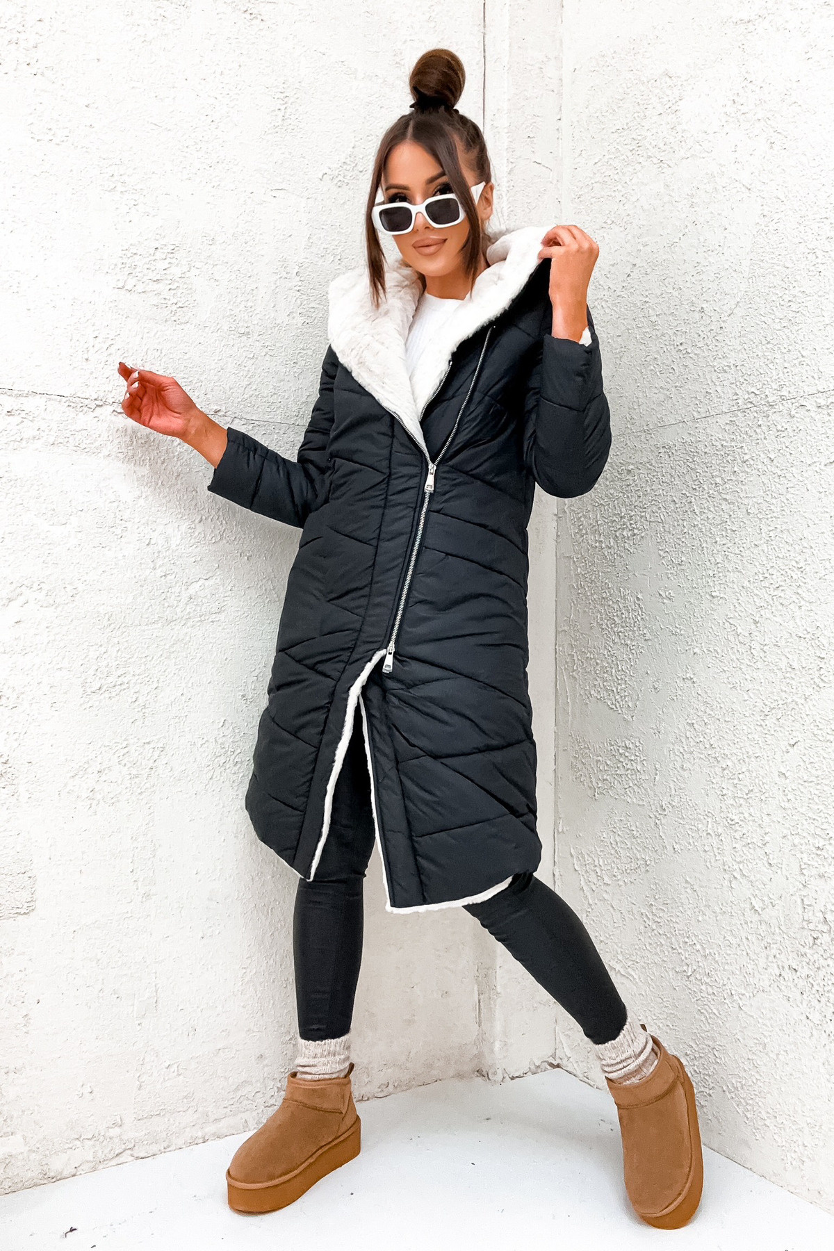 DŁUGA DWUSTRONNA KURTKA Z FUTERKIEM- CZARNA
