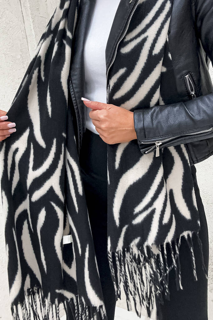 SZAL WE WZORY Z FRĘDZLAMI- BEŻOWY