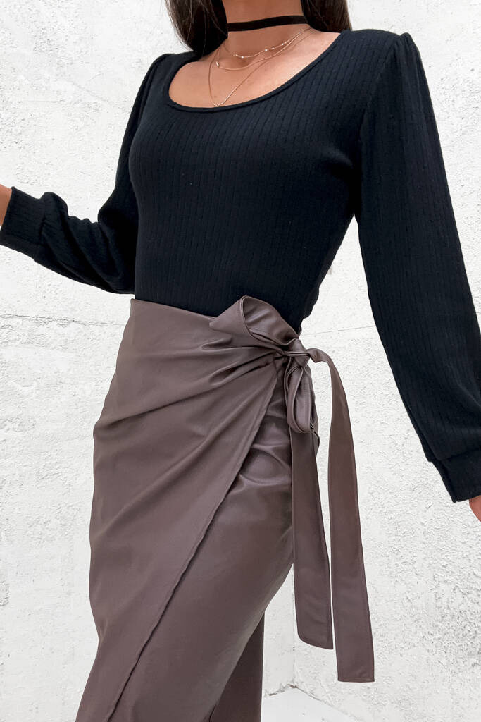 DŁUGA KOPERTOWA SPÓDNICA WOSKOWANA- CIEMNY BRĄZ
