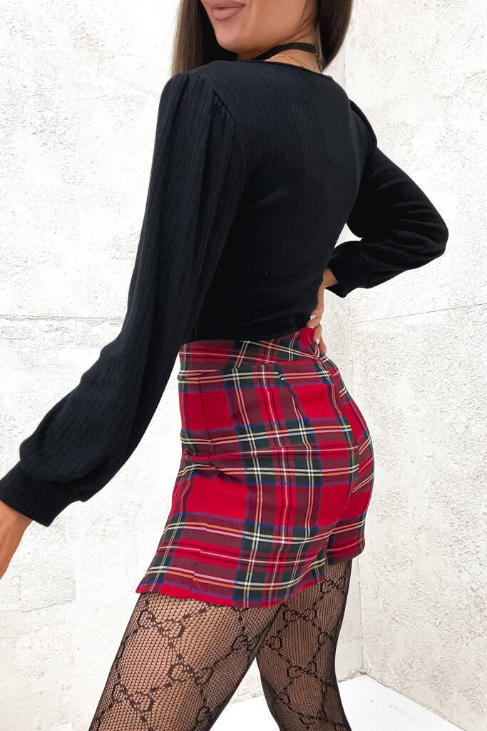 CZERWONE SPÓDNICO SPODENKI W KRATĘ Z WYSOKIM STANEM