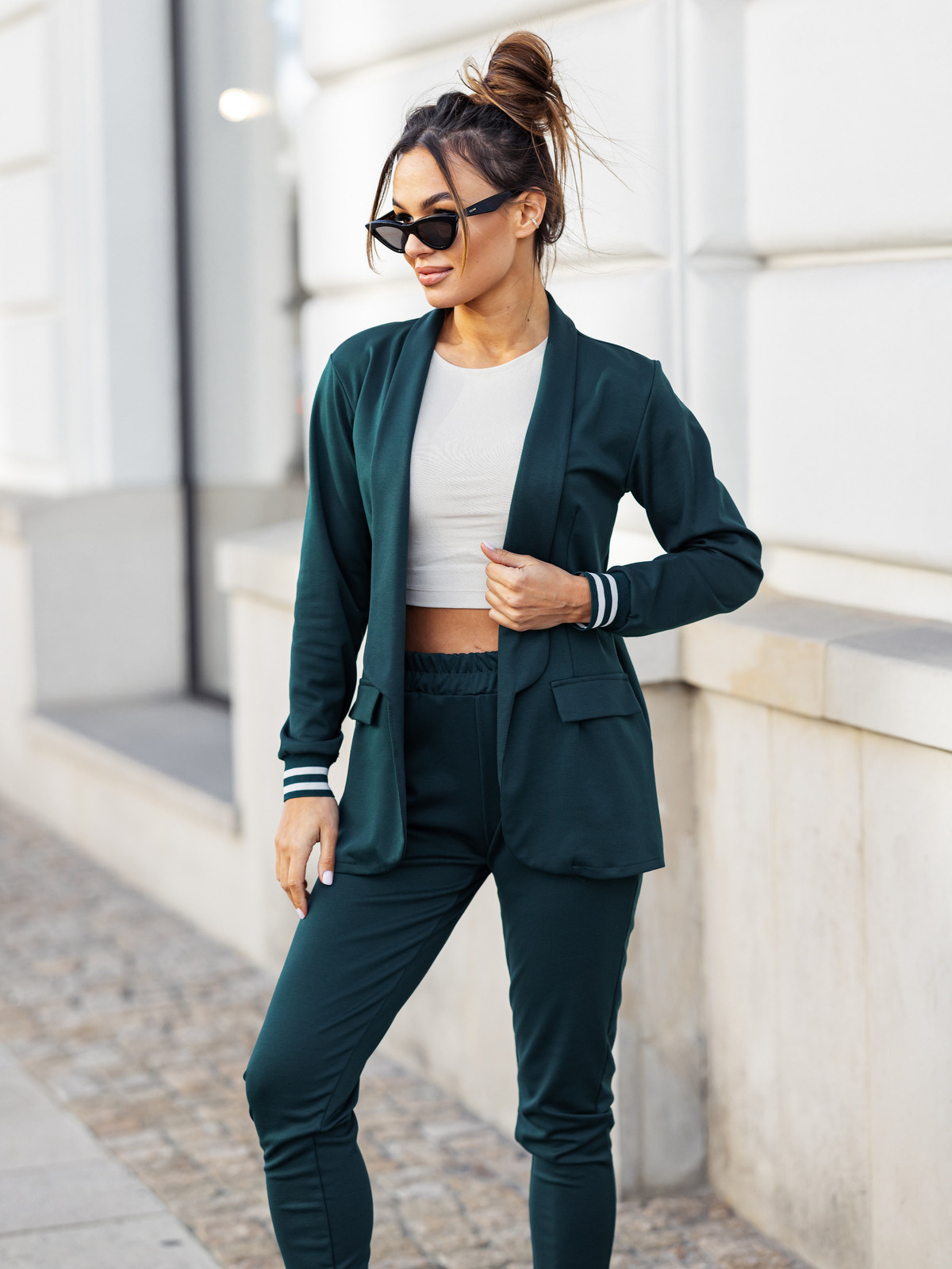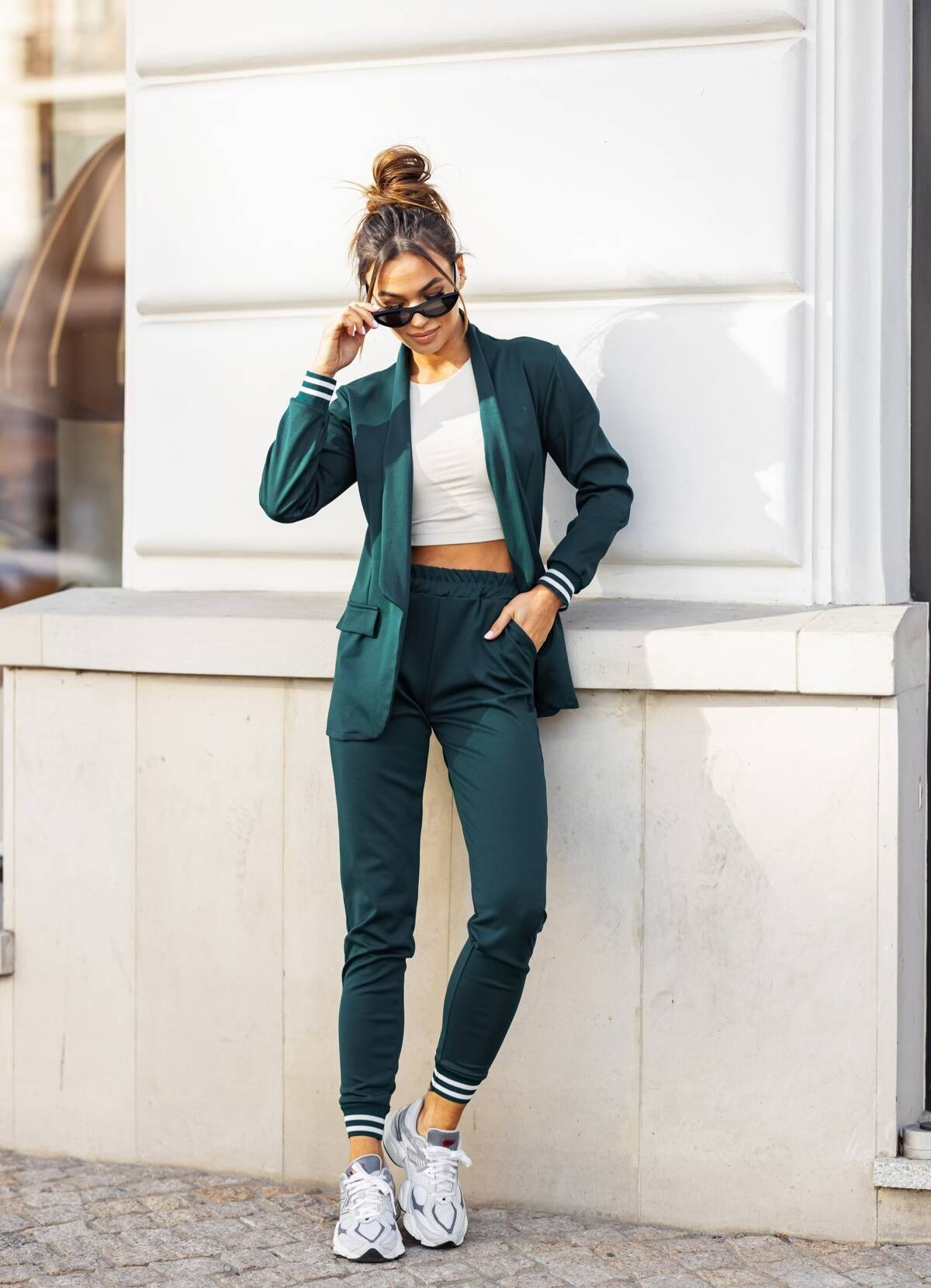 KOMPLET SPODNIE+ MARYNARKA ZE ŚCIĄGACZAMI- BUTELKOWA ZIELEŃ