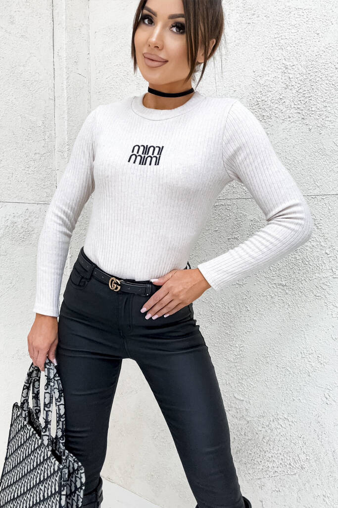PRĄŻKOWANA BLUZKA Z WYSZYWANYM NAPISEM- BEŻOWA