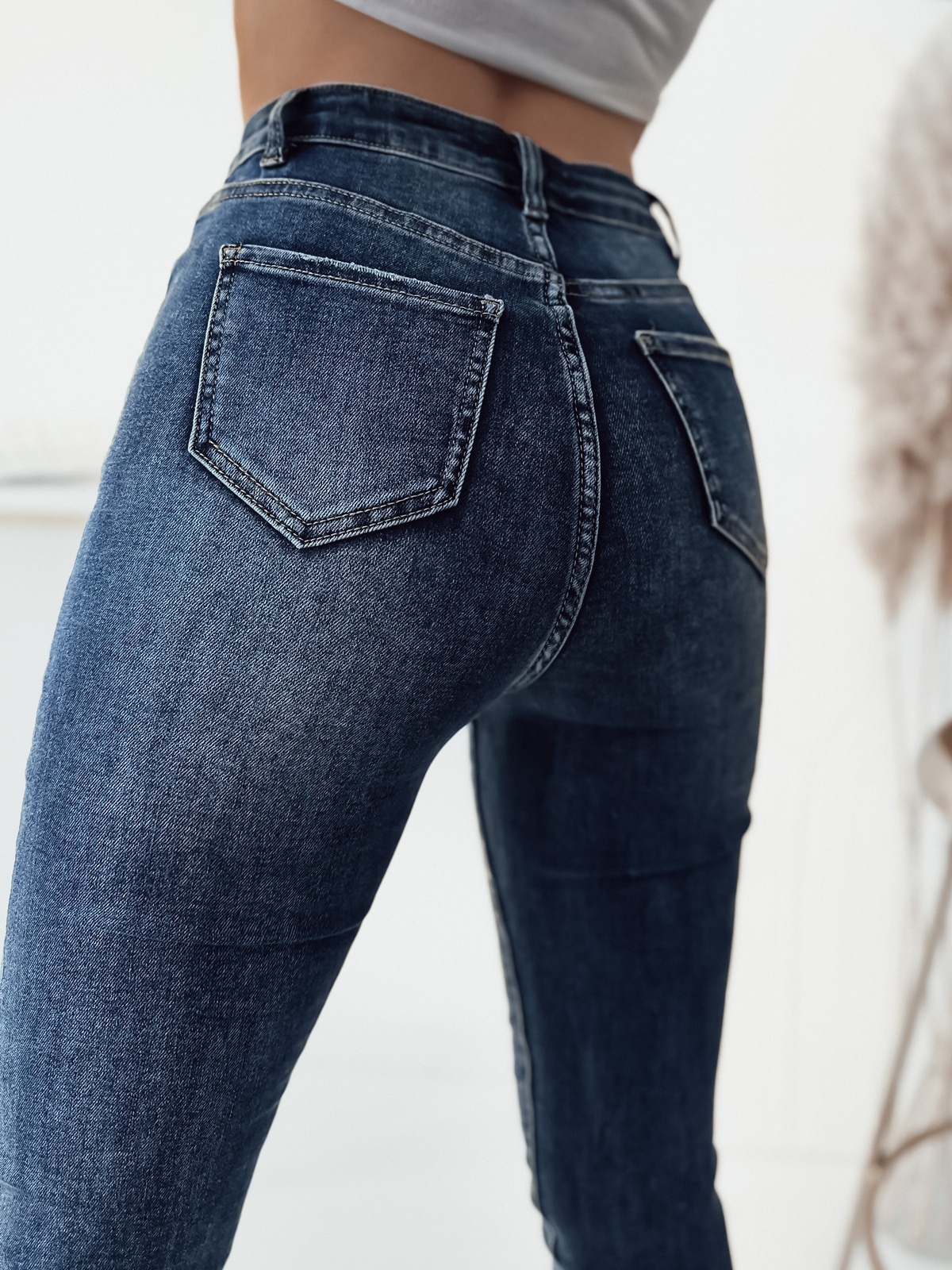 CIEMNE SPODNIE JEANSOWE Z GUZIKAMI- BARDZO WYSOKI STAN
