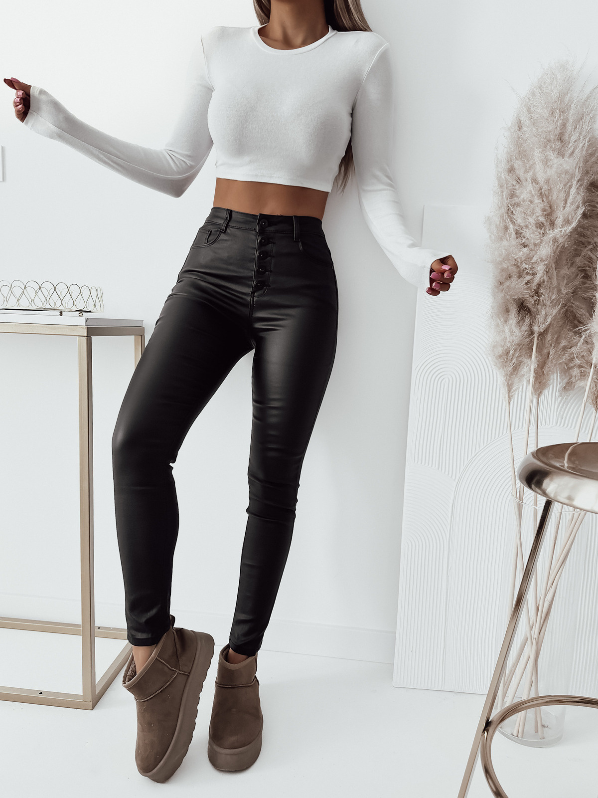SPODNIE WOSKOWANE Z GUZIKAMI I WYSOKIM STANEM- CZARNE