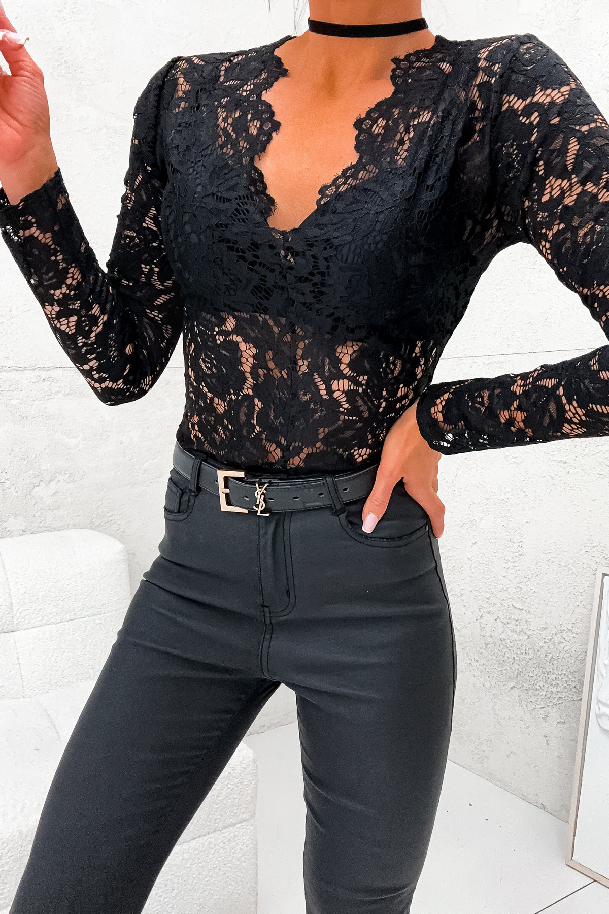KORONKOWE BODY Z DEKOLTEM- CZARNE