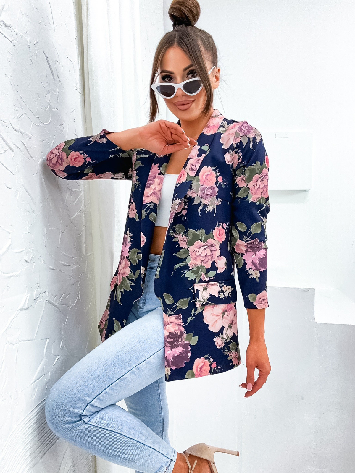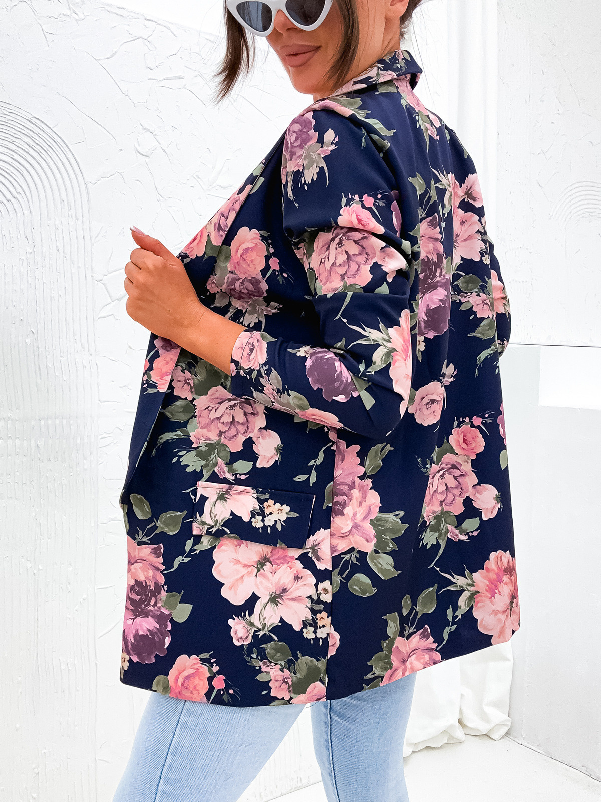 ELEGANCKA WZORZYSTA MARYNARKA- GRANATOWA
